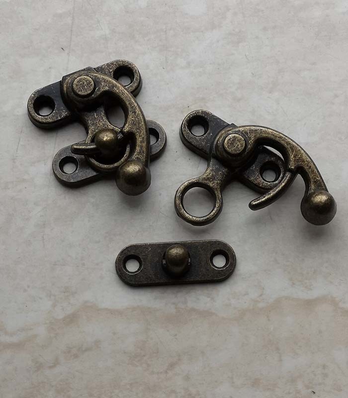 stevig vintage bronskleurig haakslot met ring, geschikt voor een sluiting op kasten, kleding, tasjes en zo
